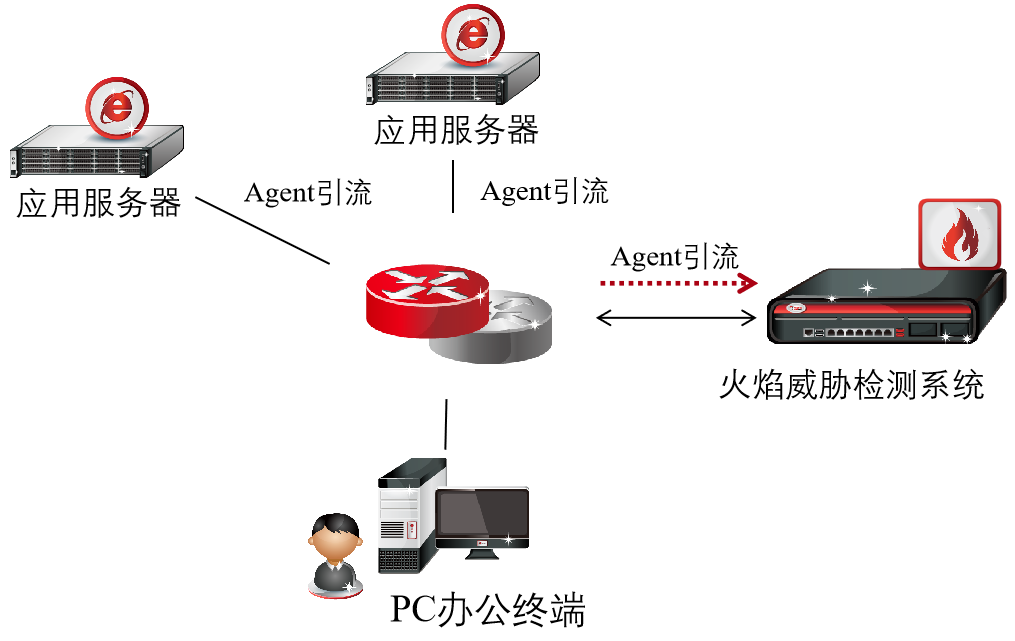 业务上云技术日趋成熟,市场接受度越来越高,虚拟化场景越来越普遍。为了应对日益复杂的业务场景,TopFLAME支持Agent探针引流模式,将Agent探针插件安装在目标应用服务器操作系统上,获取网卡交互流量回传给TopFLAME。